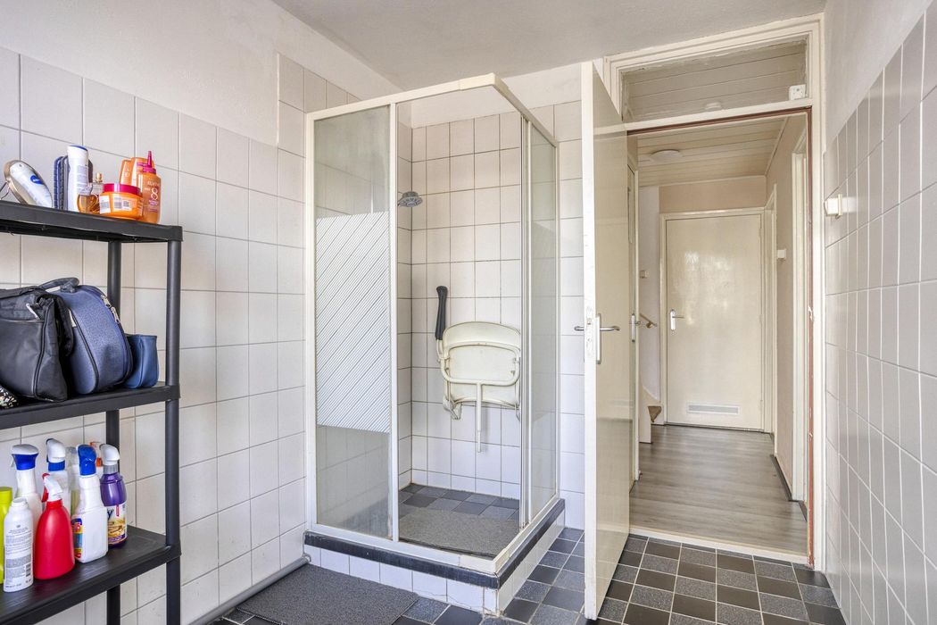 1e Verdieping: Overloop, apart 2e toilet, voorslaapkamer, achterslaapkamer met airco. De badkamer is ruim te noemen (voorheen een slaapkamer) en voorzien van een douchegelegenheid. Er is een aparte wasruimte (voorheen de badkamer) met de opstelplaats voor de wasapparatuur.